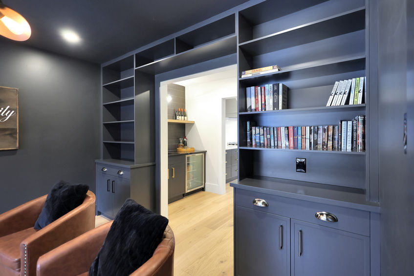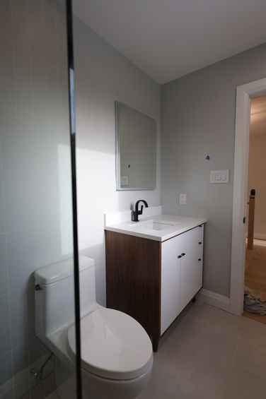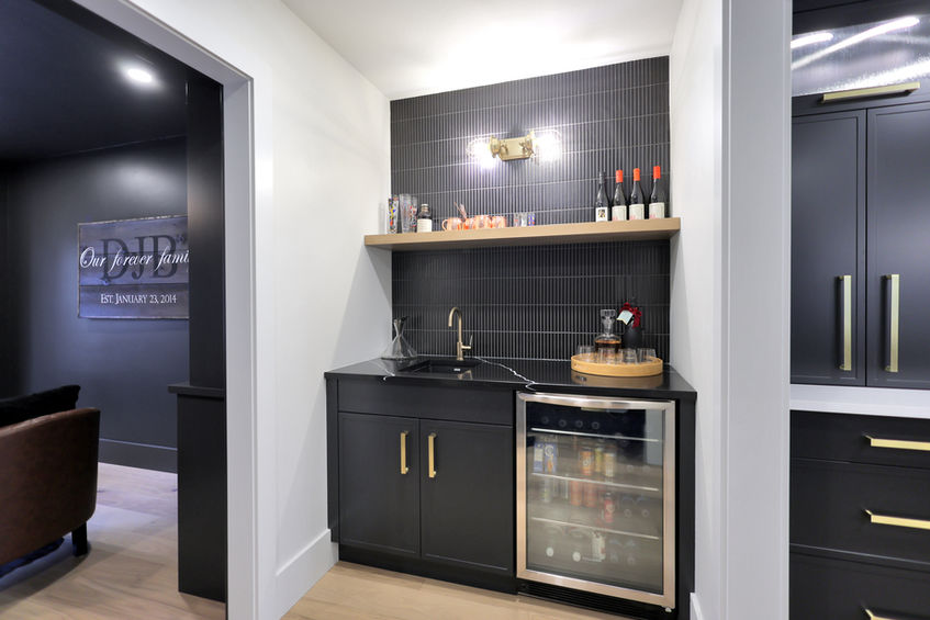 This Hamilton basement renovation reimagined a once-underutilized space into a cozy, functional retreat. The transformation includes fresh flooring throughout, updated lighting, and a modern media nook perfect for movie nights or game day. A custom-built wet bar adds both charm and convenience, while the new three-piece bathroom features a walk-in glass shower and matte black fixtures for a sleek, contemporary feel. Whether it's a quiet evening in or hosting friends, this lower-level upgrade brings warmth, style, and serious function to the heart of the home.