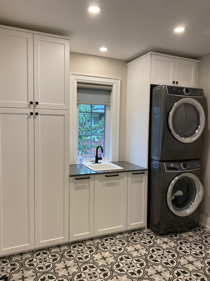 In this main floor renovation, we created an open concept by removing a dividing wall, relocating the custom kitchen for enhanced functionality and flow. The remodel includes new flooring, updated trim, and tile for a polished finish, ideal for family gatherings. Recessed pot lights and a stylish dining room fixture brighten the space, making it feel spacious and inviting. With quality craftsmanship and thoughtful design, this renovation adds both value and functionality, perfectly aligning with the homeowner's vision.